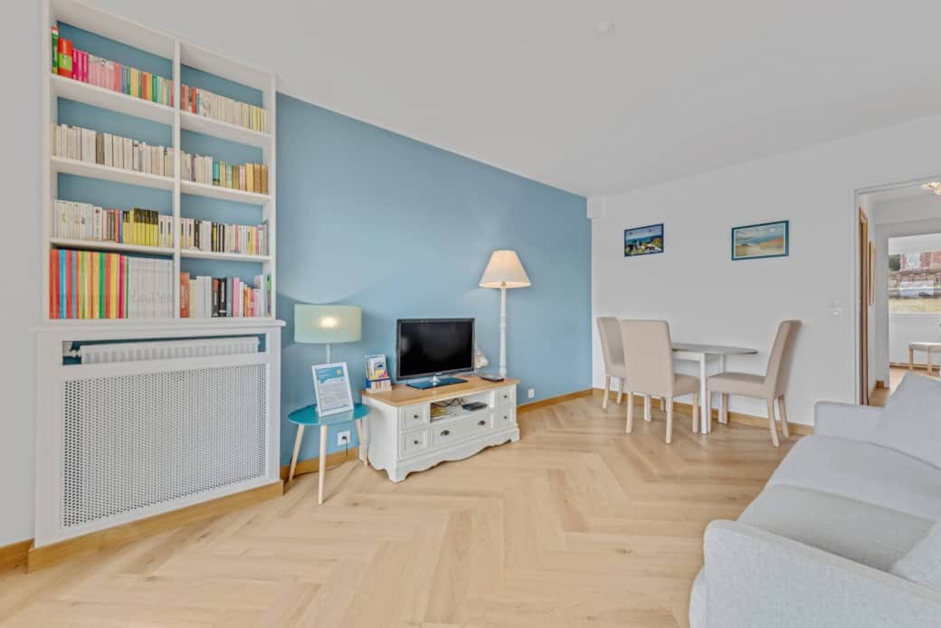L'appartement est situé dans la Résidence "Les Tennis", refait à neuf au style scandinave chic, il vous charmera par son environnement calme à seulement 7 min à pied de la mer et des commerces et à 500 mètres de la Gare d'Houlgate