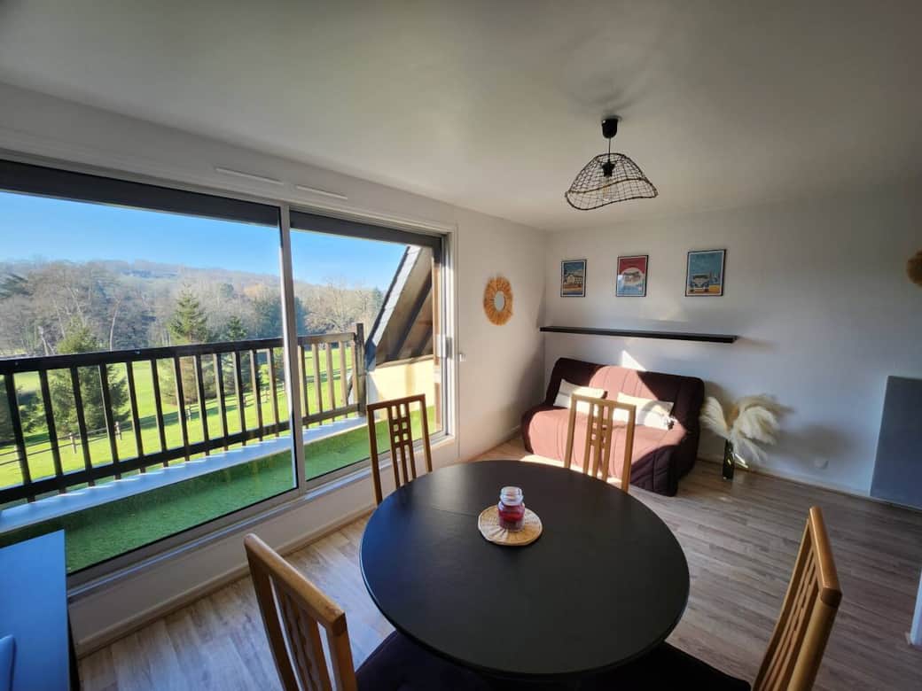 L'appartement dispose d'un petit balcon avec une vue exceptionnelle sur le Golf d'Houlgate et d'une place de parking.